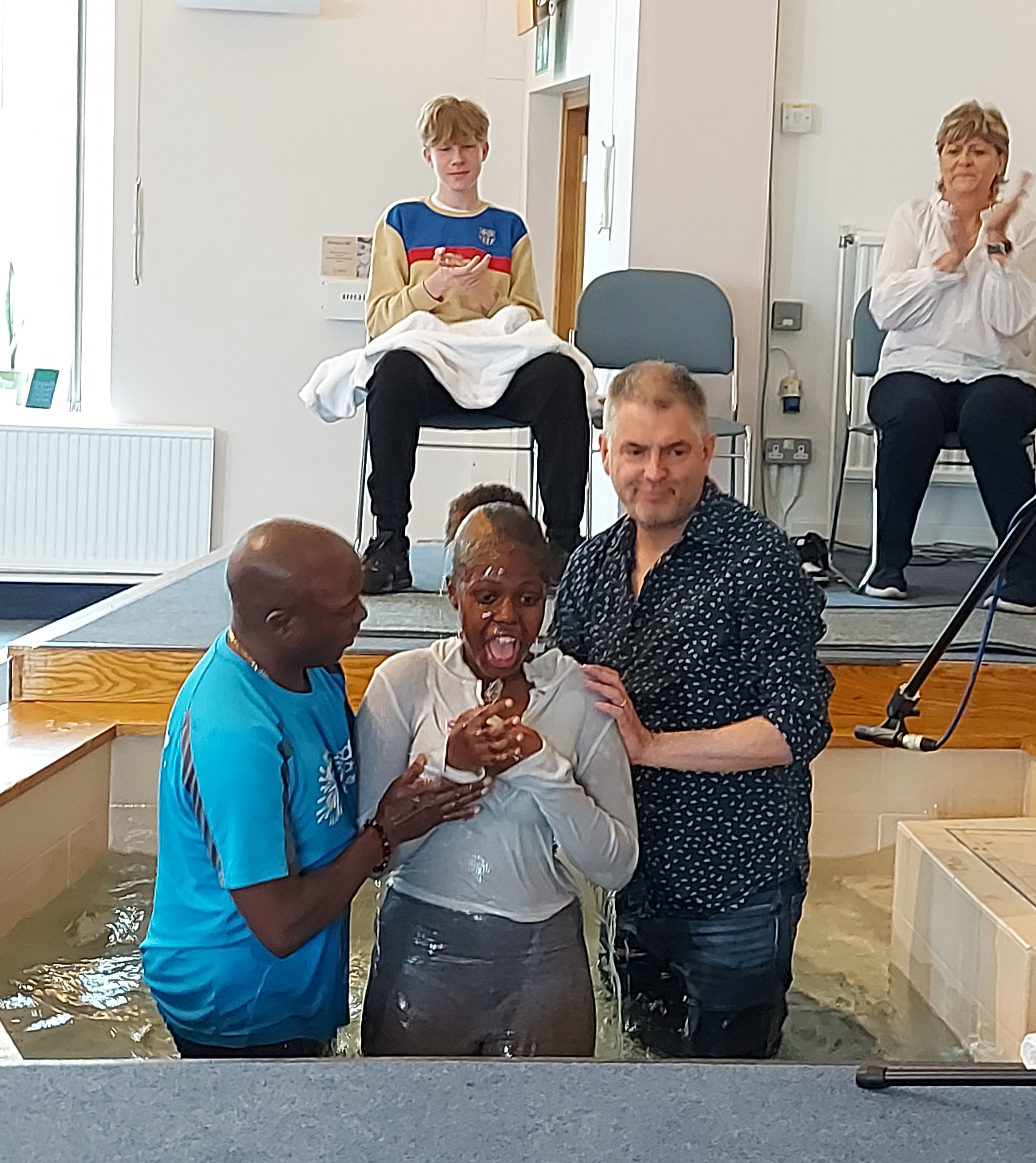 At Selsdon Baptist we have a baptistry set into the stage, and tend to have a baptism services two or three times a year. The baptismal candidates usually give a short testimony, explaining how they came to the decision to be baptised.